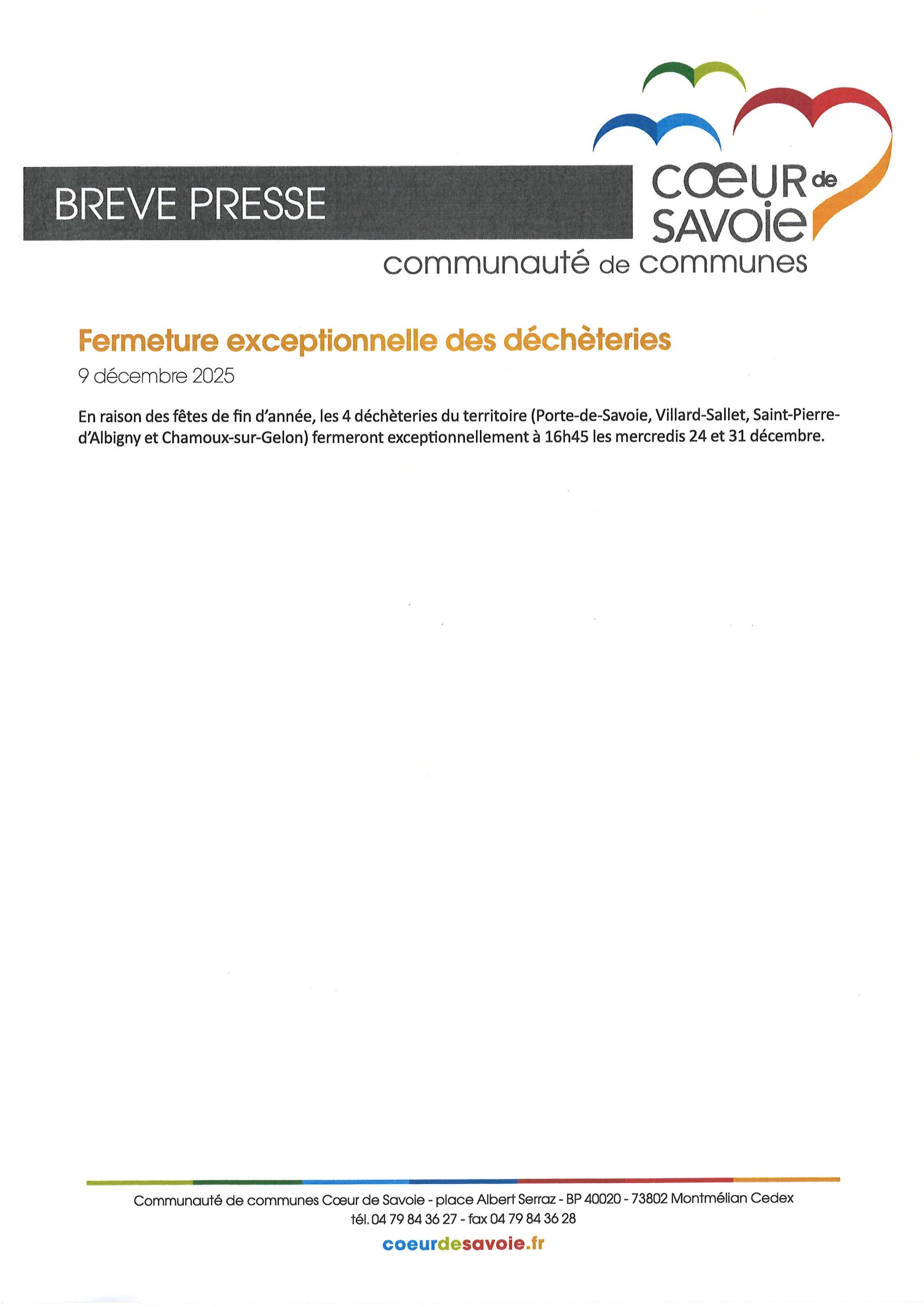 BREVE PRESSE INFORMATION DECHETERIES