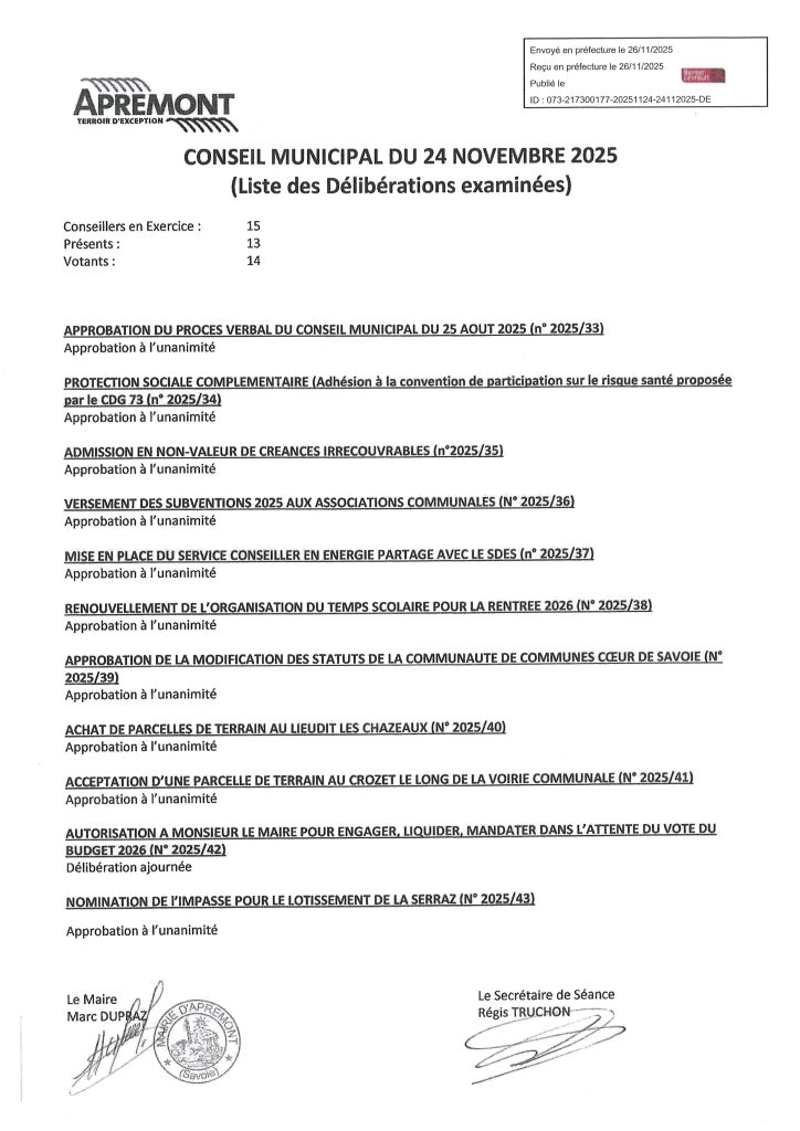 CONSEIL MUNICIPAL DU 24 NOVEMBRE 2025