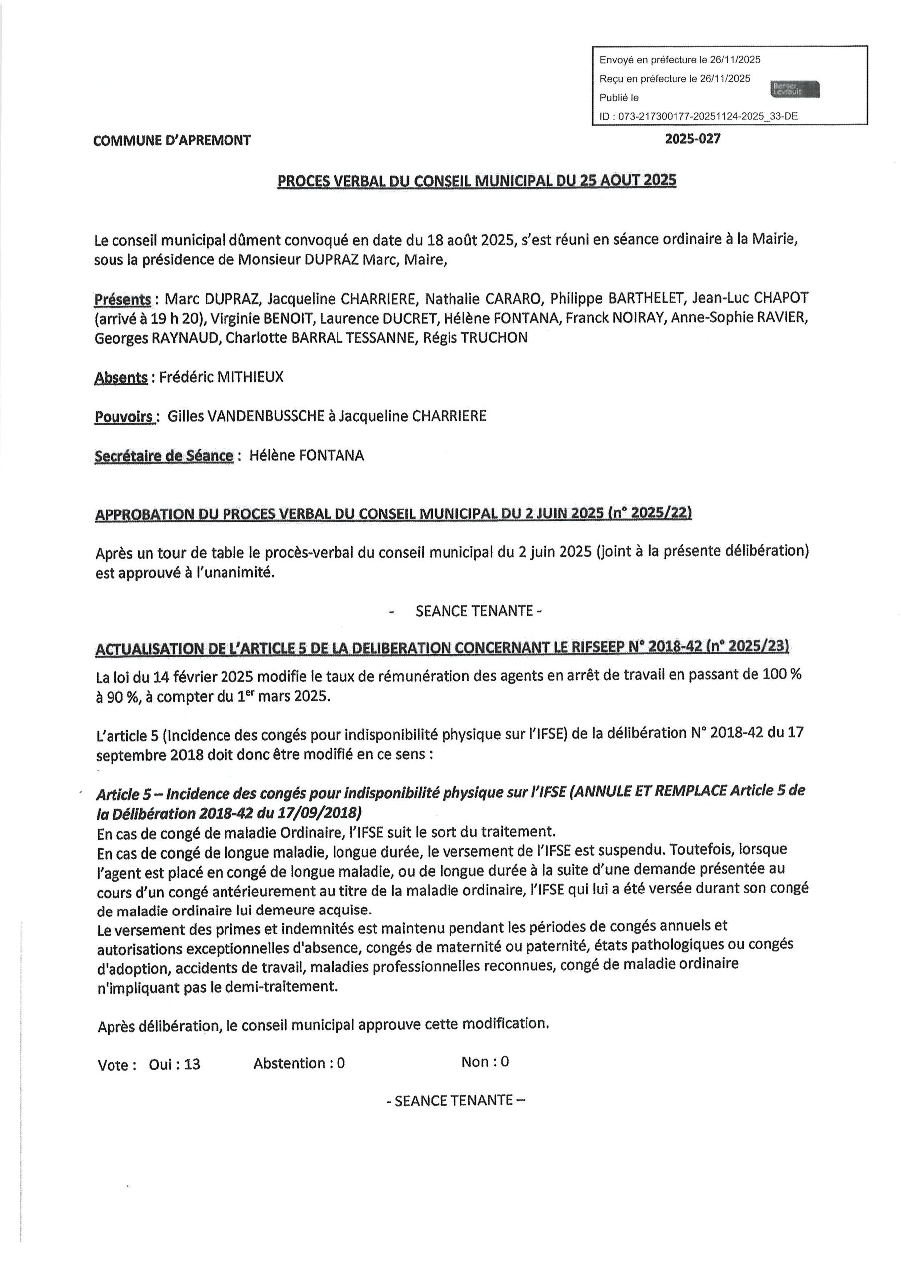 CONSEIL MUNICIPAL DU 25 août 2025 :